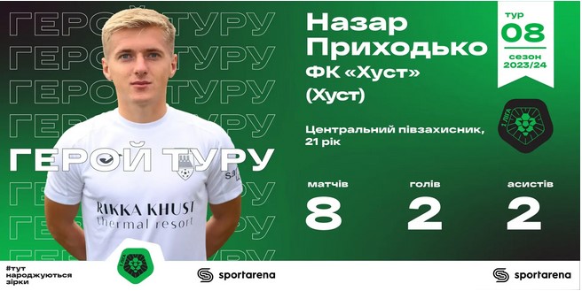 Перемога ФК Хуст над тернопільською Нивою – головна сенсація восьмого туру Першої ліги. Виступ півзахисника хустян Назара Приходька – головний перфоманс туру. Два влучні удари, один із яких шикарним ударом зі штрафного, 21-річного хавбека принесли перемогу Хусту.