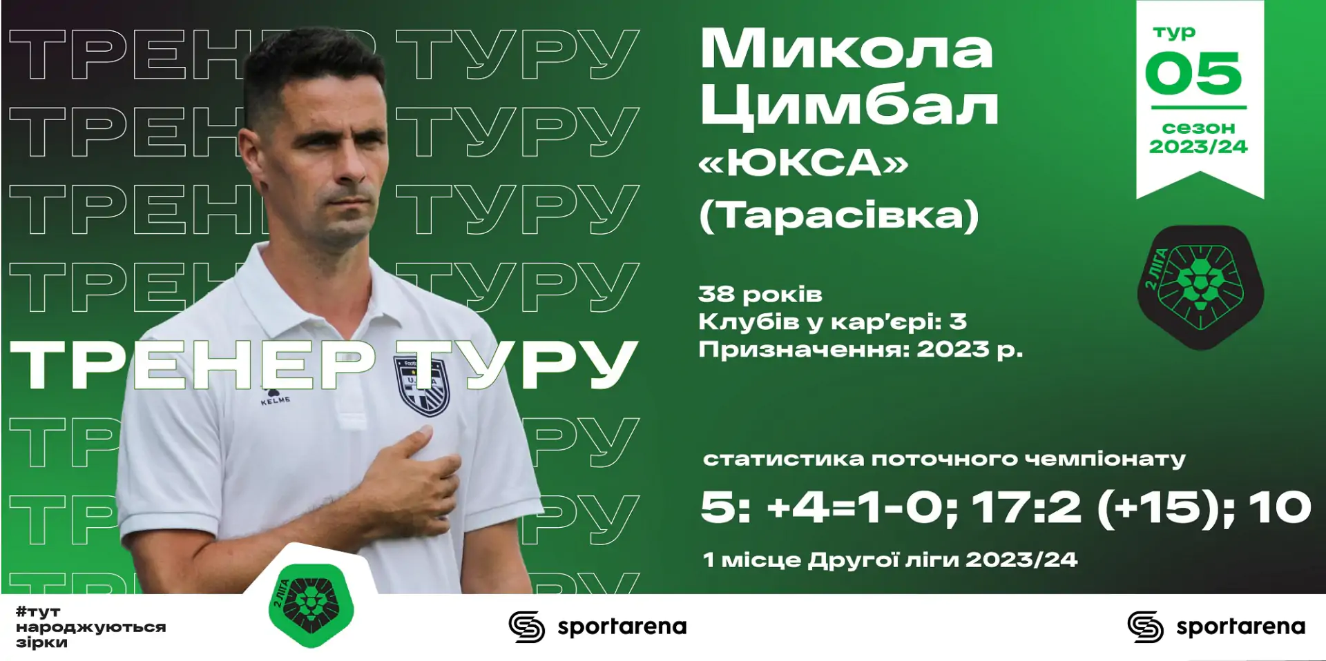 ЮКСА – головне відкриття старту сезону у Другій лізі. Новачок професіонального футболу України виграв в чемпіонаті уже п’ятий матч поспіль і впевнено очолює турнірну таблицю. Не дивно, що за перші п’ять турів наставника команди Миколу Цимбала вже двічі було визнано найкращим тренером туру.