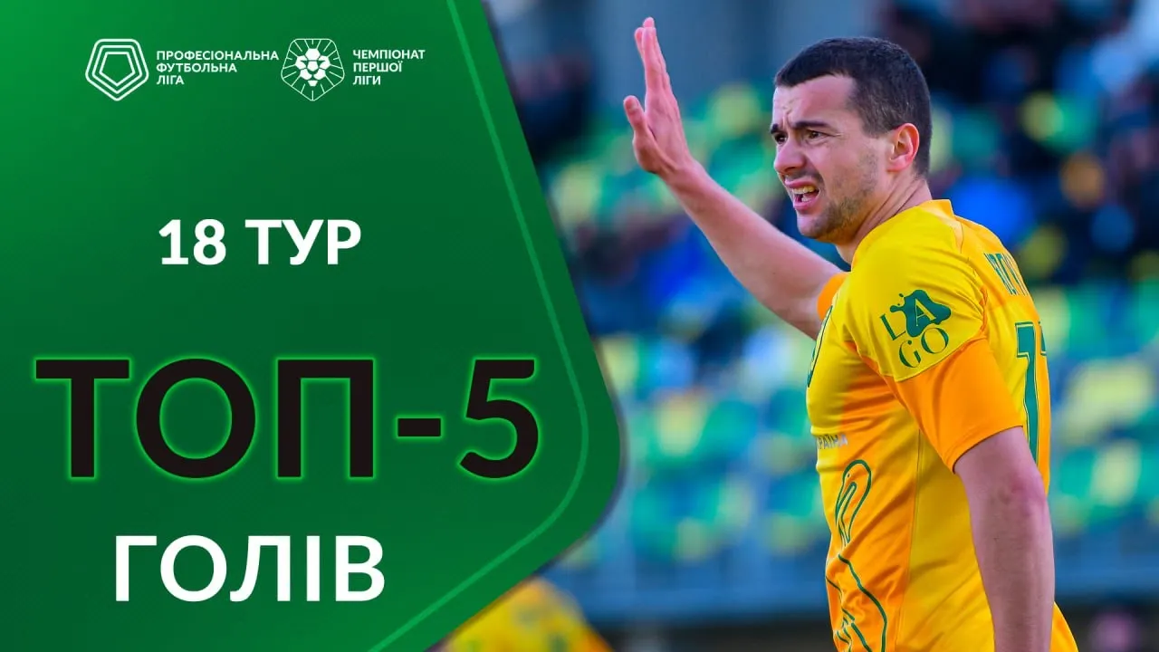 До вашої уваги ТОП-5 голів 18-го туру Першої ліги ПФЛ сезону 2023/24.